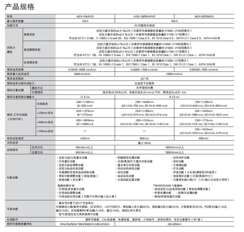 新型试验机AGX-V采用高钢框架、智能横梁、多处理器、多控制单元实现了高速采样和高精度自动控制。搭载