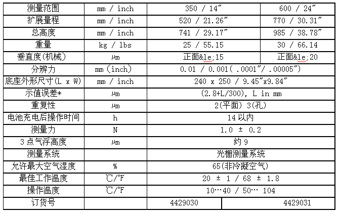 *检测条件:20℃环境温度,DIN 876/0标准岩石平台,标准测头