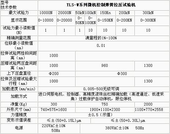 本机主要适用于各种弹簧的强度试验、力学性能及工序能力分析。TLS-WI系列微机控制拉压弹簧试验机依据JB/T7796-2005《拉压弹簧试验机技术条件》规定的技术要求制成。该型拉压弹簧试验机主要用于测试各种螺旋弹簧及弹性元件的强度,即在一定的变形量(或高度)下测试弹簧的试验力或在一定的试验力下测定弹簧的高度或变形量。