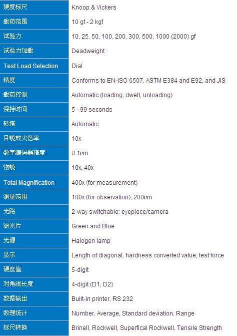 400配备了一个自动砖塔和高清晰的光学元件,总放大倍数为100X和400X;系统带有从10gf至2Kgf(详见技术规格)8个级别的主试验力选择手轮,为便于安装试样,该硬度计还配备了100mm X 100mm精密的XY试台,XY每个方向上均可移动25mm。
